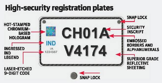 ഹോളോഗ്രാം ഉള്പ്പെടെയുള്ള സുരക്ഷാക്രമീകരണങ്ങളുള്ളതാണ് അതിസുരക്ഷാ നമ്പര്പ്ലേറ്റ്. പുതിയ വാഹനങ്ങള് വില്ക്കുമ്പോള് ഡീലര്മാര് അതിസുരക്ഷാ നമ്പര്പ്ലേറ്റുകള് നല്കണമെന്നും കേന്ദ്ര ഉപരിതലഗതാഗതമന്ത്രാലയം അറിയിച്ചു.