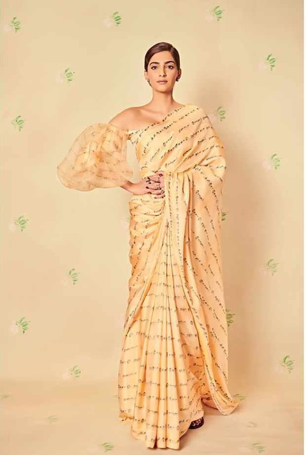 സോഷ്യൽ മീഡിയയും ഫാഷൻ രംഗവും എന്നും നടിമാർക്ക് പിന്നാലെയാണ്.എന്നാൽ അവരാകട്ടെ കണ്ണഞ്ചിപ്പിക്കുന്ന പുതുപുത്തൻ ഫാഷനു പിന്നാലെയും. ഫാഷന് രംഗത്തെന്നും പുതുമകളുമായി എത്തുന്ന ബോളീവുഡ് നടി സോനം കപൂര് അണിഞ്ഞ സാരിയാണ് സോഷ്യല് മീഡിയയില് ഇപ്പോൾ വൈറലായിക്കൊണ്ടിരിക്കുന്നത്. കഴിഞ്ഞ ദിവസം മുംബൈയില് നടന്ന തന്റെ പുതിയ ചിത്രം 'ഏക് ലഡ്കി കൊ ദേഖാ തൊ ഐസാ ലഗാ' യുടെ സ്ക്രീനിങ്ങിന് താരമെത്തിയത് സാരിയണിഞ്ഞുള്ള വെറൈറ്റി ലുക്കിലാണ്. തമിഴ് അക്ഷരങ്ങള് പ്രിന്റ് ചെയ്ത ക്രീം നിറത്തിലുള്ള സാരിയായിരുന്നു സ്ക്രീനിങ്ങിനെത്തിയപ്പോള് സോനം ധരിച്ചിരുന്നത്.