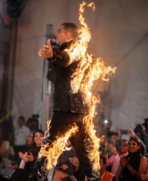 റാംപിലുള്ള അക്ഷയ് കുമാറിന്റെ തീക്കളിയും അതുകണ്ട് പ്രതികരിച്ച ട്വിങ്കിള് ഖന്നയുടെ ട്വീറ്റുമാണ് സോഷ്യൽ മീഡിയയുടെയും, ബോളിവുഡിന്റെയും ഇപ്പോഴത്തെ ചൂടൻ ചർച്ച വിഷയം. ആമസോണ് പ്രൈംമിന്റെ ദി എൻഡ് എന്ന പരമ്പരയിലൂടെയാണ് അക്ഷയ് കുമാർ ഡിജിറ്റൽ രംഗത്തേക്ക് കാലെടുത്തുവെക്കുന്നത്. ഈ വാർത്ത പുറം ലോകത്തെ അറിയിക്കാനായി അക്ഷയ് റാംപിലെത്തിയത് തീ പടർന്ന വസ്ത്രം ധരിച്ചുകൊണ്ടാണ്.