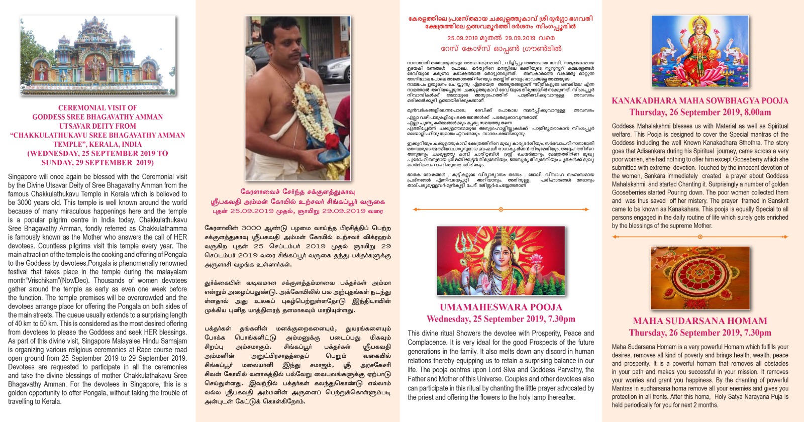 ചക്കുളത്തുകാവ് ശ്രീ ദുര്ഗ്ഗാ ഭഗവതി ഉത്സവമൂര്ത്തി ദര്ശനവും പൊങ്കാലയും സിംഗപ്പൂരില്