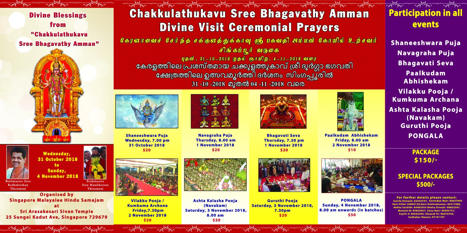 ചക്കുളത്തുകാവ് ശ്രീ ദുര്ഗ്ഗാ ഭഗവതി ക്ഷേത്രത്തിലെ ഉത്സവമൂര്ത്തി ദര്ശനവും പൊങ്കാലയും സിംഗപ്പൂരില്