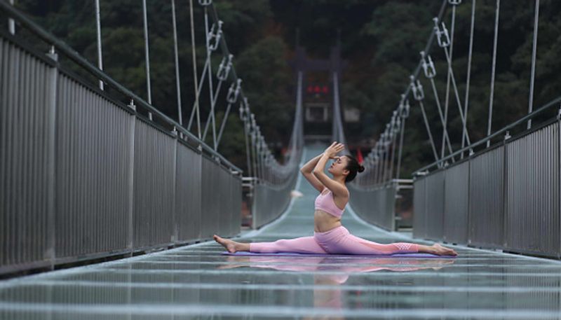 യോഗ, വിവാഹ, ഗര്ഭകാലം എന്നുവേണ്ട 'ഫോട്ടോഷൂട്ടാണോ ? എങ്കില് ഗ്ലാസ് പാലം തന്നെ' എന്നതിലേക്കുവരെ ചൈനയിലെ കാര്യങ്ങള്. ഒന്നും രണ്ടുമല്ല 2300 ചില്ലുപാലങ്ങളുടെ നാടാണ് ചൈന.