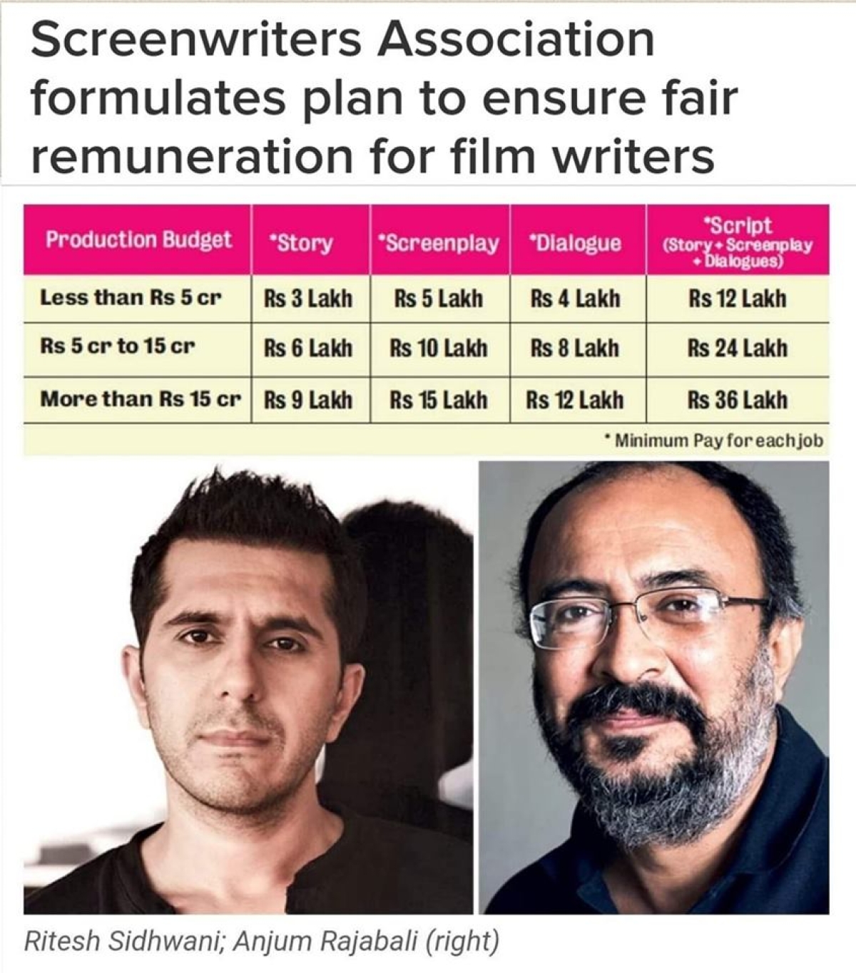 എന്നാൽ ഇതിൽ നിന്നൊരു മാറ്റം വരാൻ എന്നോണം തിരക്കഥാകൃത്തും സഹരചയിതാവായും സംഭാഷണ രചയിതാവായും കഥാകൃത്തായും സിനിമയുടെ സര്ഗാത്മക മേഖലയില് നില്ക്കുന്നവര് വേതനത്തിന്റെ കാര്യത്തില് അവഗണന നേരിടുന്നുണ്ടെന്ന് ചൂണ്ടിക്കാട്ടിയാണ് ബോളിവുഡില് നിന്ന് എഴുത്തുകാരുടെ പുതിയ നീക്കം.