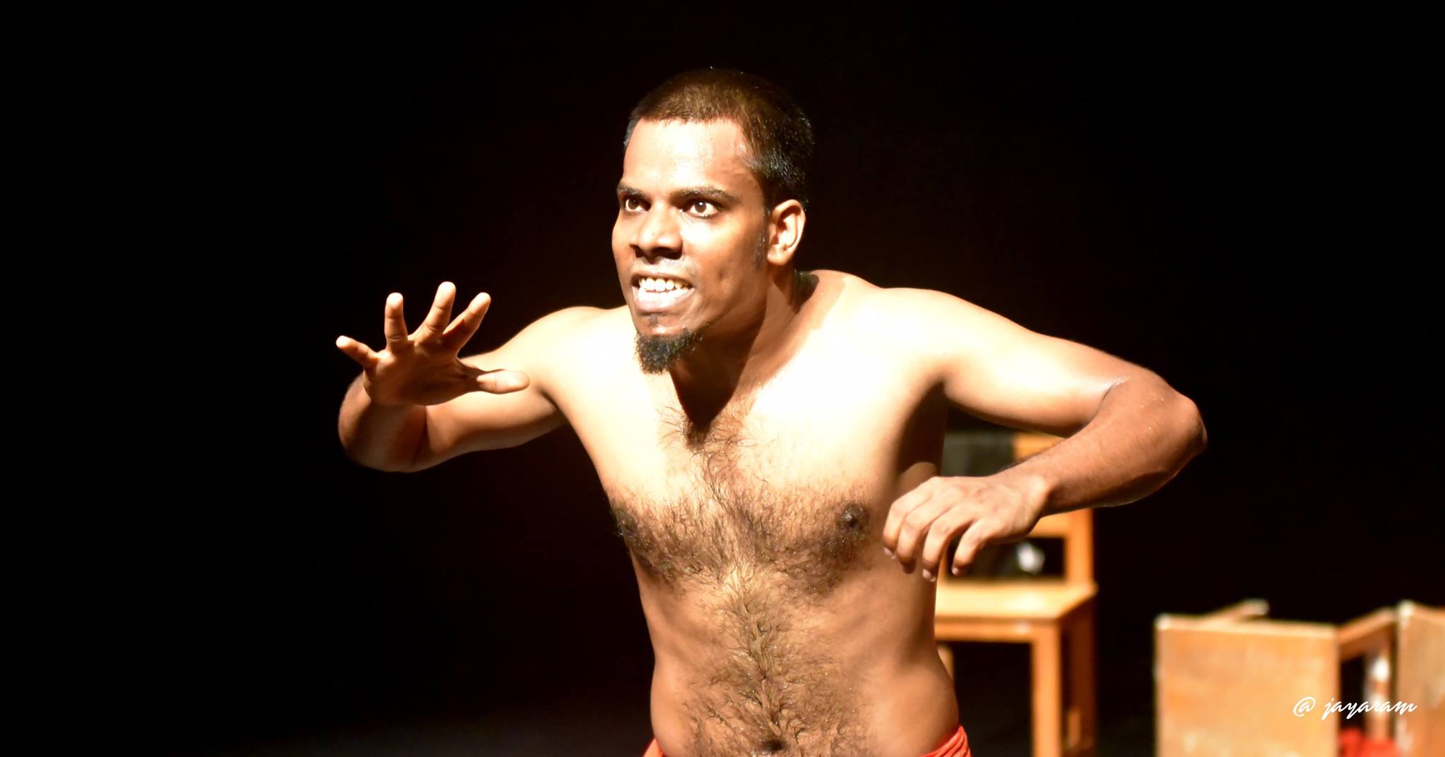 A special mention has to be made of the use of limited props to great effect and the amazing lighting. Especially that last scene when the blue back-lit Saran carries the Mizhavu off-stage on his shoulders and descends. The applause didn’t stop for a while after that!