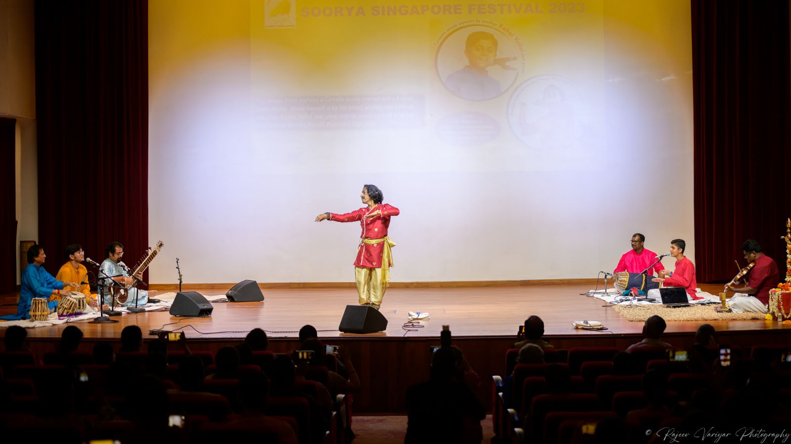 കഥക് മാസ്ട്രോ പണ്ഡിറ്റ് രാജേന്ദ്ര ഗംഗാനിയുടെ ചടുലമായ കഥക് നൃത്തങ്ങളും വളരെ ചെറിയ പ്രായത്തിൽ തന്നെ സംഗീതാസ്വാദകരുടെ മനം കവർന്ന, വെറും 16 വയസ്സ് മാത്രം പ്രായമുള്ള ശാസ്ത്രീയ സംഗീത രംഗത്തെ പ്രതിഭ ബംഗളുരു സ്വദേശി രാഹുൽ വെള്ളാലിന്റെ കച്ചേരിയും പ്രേക്ഷകരെ അക്ഷരാർത്ഥത്തിൽ ആസ്വാദനത്തിന്റെ മറ്റൊരു തലത്തിലേക്ക് കൂട്ടിക്കൊണ്ടുപോയി. ജയ്പൂർ സ്വദേശിയായ പണ്ഡിറ്റ് രാജേന്ദ്ര ഗംഗാനിയുടെ ചുവടുകൾ സദസ്സിൽ സന്നിവേശിപ്പിച്ച താളങ്ങളിൽ പ്രകൃതിയും കാറ്റും മഴയുമെല്ലാം പ്രേക്ഷകർക്ക് അനുഭവ വേദ്യമാക്കി. സിംഗപ്പൂർ ഫൈൻ ആർട്സ് സൊസൈറ്റി (SIFAS) യിലെ കലാകാരന്മാരും അതിഥി കലാകാരന്മാർക്കൊപ്പം അരങ്ങിൽ പൂർണ്ണ പിന്തുണയായി.