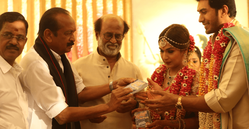 രജനീകാന്തിന്റെ മകളും സംവിധായികയുമായ സൗന്ദര്യ രജനീകാന്തും നടനും ബിസിനസുകാരനുമായ വൈശാഖന് വണങ്കാമുടിയും വിവാഹിതരായി. ചെന്നൈ ലീലാ പാലസ് ഹോട്ടലില് ആയിരുന്നു വിവാഹ ചടങ്ങുകൾ.സിനിമാ-രാഷ്ട്രീയ മേഖലയിലെ പ്രമുഖര് ചടങ്ങിൽ പങ്കെടുത്തു.