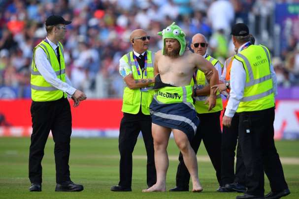 ലോകകപ്പ് ക്രിക്കറ്റ് മത്സരത്തിനിടെ തുണിയില്ലാതെ ക്രീസിലെത്തി; തുണിയുടുപ്പിച്ച് സെക്യൂരിറ്റി ജീവനക്കാര്