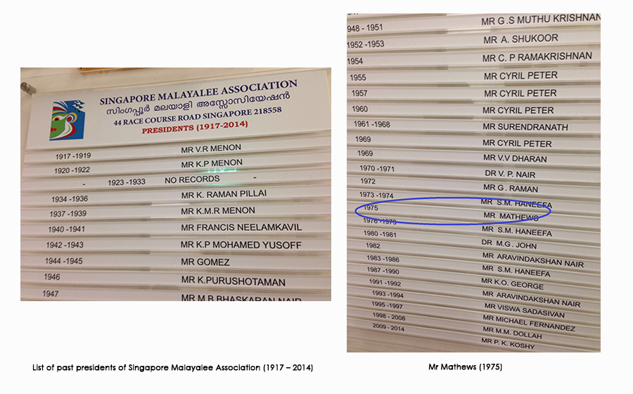 Sheela vaguely remembered that her father was the President of the Kerala Association. That was readily verified with a quick check on the list of presidents of the association that hung on the Singapore Malayalee Association walls.