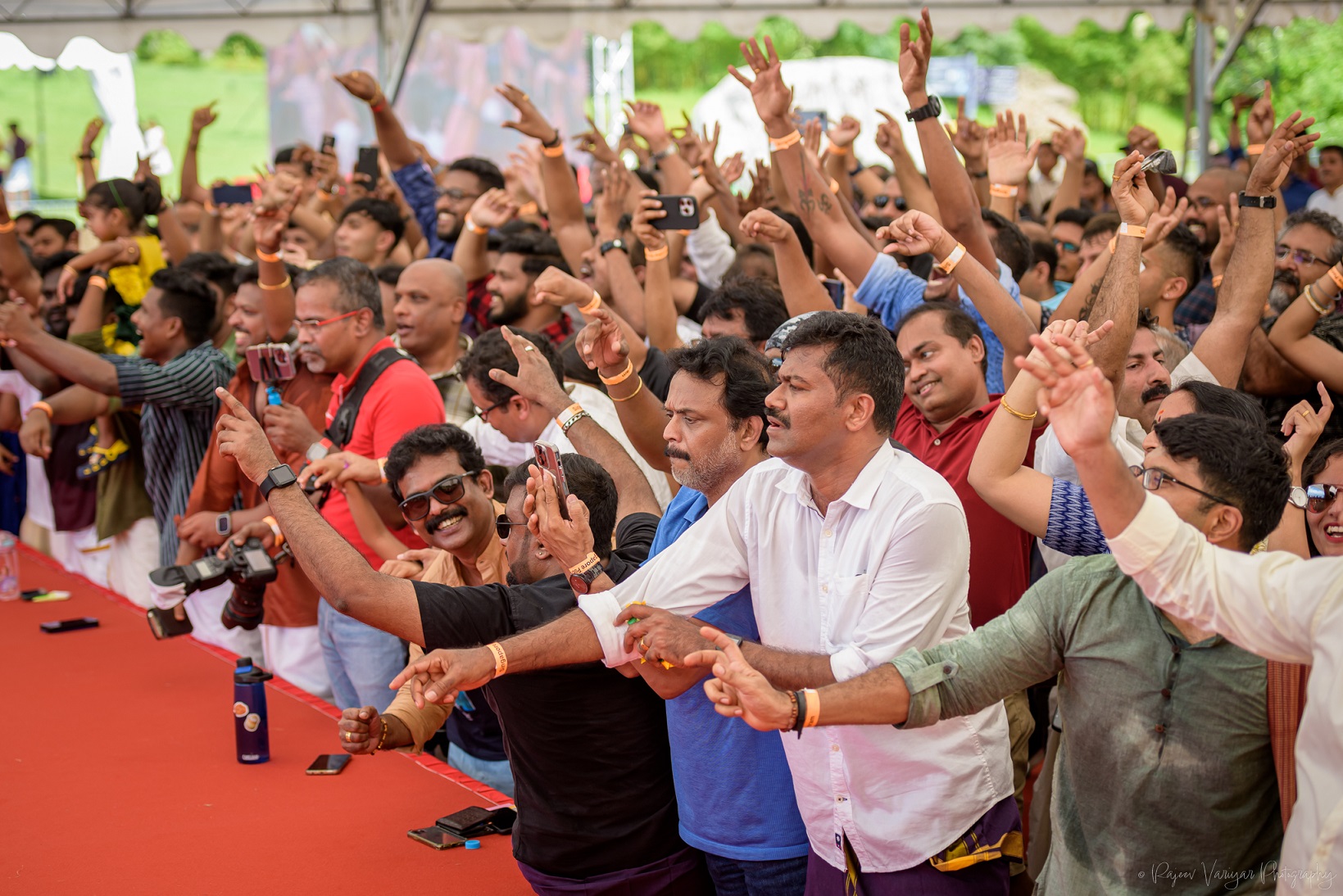 The program started at 8:30 AM with the traditional “Thalappoli” - Thalappoli is a ritual ceremony performed as a vow in Hindu temples in Kerala, India. Decked in beautiful traditional clothes and Kerala ornaments, the women, mainly girls, line up with holding a thalam (a metal plate) in their hands filled with fresh paddy, flowers, rice, coconut (usually broken into two pieces), a lighted lamp and go around the temple with kurava (traditional form of sound), shouts and playing of instruments. The Thalappoli lined up with the drummers in from t of the VIP waiting area, to welcome the Guests of Honor for the event and then onto the stage. The event was graced and inaugurated by Mr. Vikram Nair (Member of Parliament – Singapore), Mr. Ramamurthy and Mr. Lee Hong Chuang. After the inauguration mementos were handed over to the GOH and the man artists for the event were felicitated. There was a mega group song where 400 + enthusiasts participated and entered their names into the Singapore Books of Records for the largest Indian group singing with 405 participants.