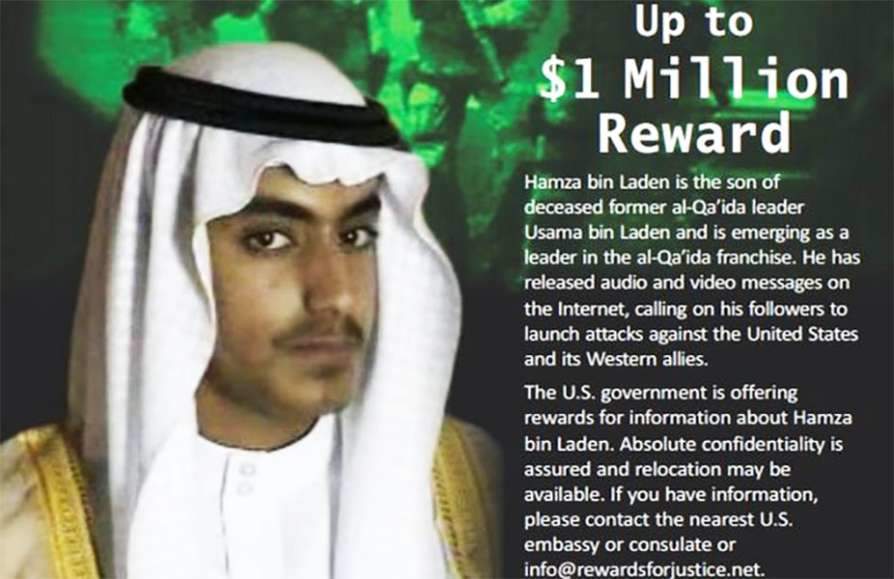 ബിൻ ലാദന്റെ മകനെ കുറിച്ചുള്ള വിവരങ്ങള് കൈമാറുന്നവര്ക്ക് പത്ത് ലക്ഷം ഡോളർ പാരിതോഷികം പ്രഖ്യാപിച്ച് അമേരിക്ക