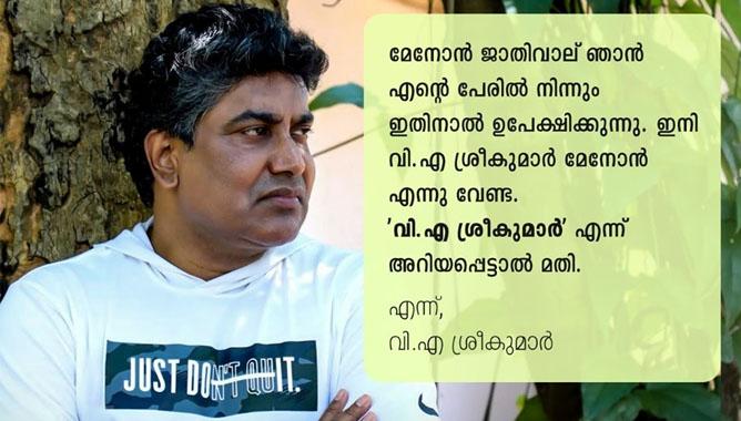 പേരിനൊപ്പമുള്ള 'മേനോന്' ജാതിവാല് ഉപേക്ഷിച്ചു; ഇനി വിഎ ശ്രീകുമാര്
