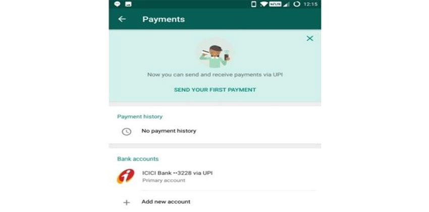 ഇന്ത്യയിലെ അഞ്ച് പ്രമുഖ ബാങ്കുകളുമായി പ്രവർത്തിക്കുന്നതിന് വാട്സാപ്പ് ധാരണിയിലെത്തി കഴിഞ്ഞു: ഐസിഐസിഐ ബാങ്ക്, എച്ച്ഡിഎഫ്സി ബാങ്ക്, ആക്സിസ് ബാങ്ക്, സ്റ്റേറ്റ് ബാങ്ക് ഓഫ് ഇന്ത്യ, ജിയോ പേയ്മെന്റ് ബാങ്ക്. യുപിഐ പിന്തുണയ്ക്കുന്ന അപ്ലിക്കേഷൻ ഉപയോഗിക്കുന്ന ആർക്കും വാട്ട്സ്ആപ്പിൽ പണം അയയ്ക്കാൻ കഴിയും.