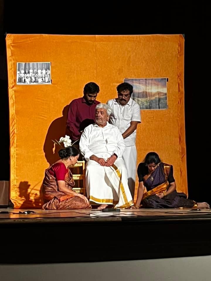 The play also uses music as a key element to create the mood and atmosphere of the story. The play features original songs composed by YGM himself, as well as some popular film songs based on Charukesi raga.